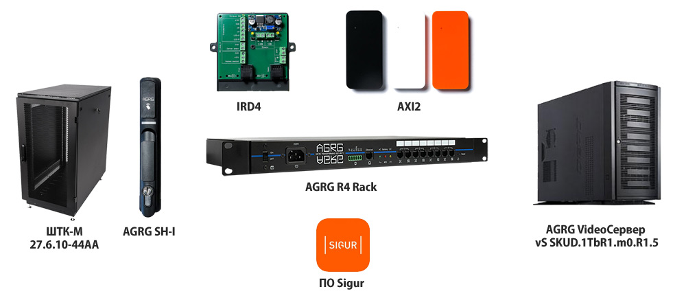 Используемое оборудование в решении: серверный шкаф, контроллеры AGRG RD4, монтажные коробки IRD4, ручки для шкафа AGRG SHi, считыватели AXI2. В комплект также входит сервер для системы контроля доступа (СКУД) и программное обеспечение.