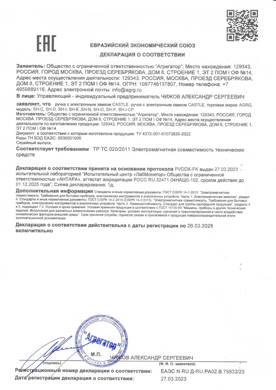 AGRG SH-I — ручка с электронным замком со встроенным мультиформатным считывателем.