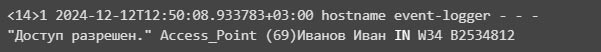 - `Зарегистрирован проход Access_Point (0)Unknown OUT W26 000 00000` - MSG.
